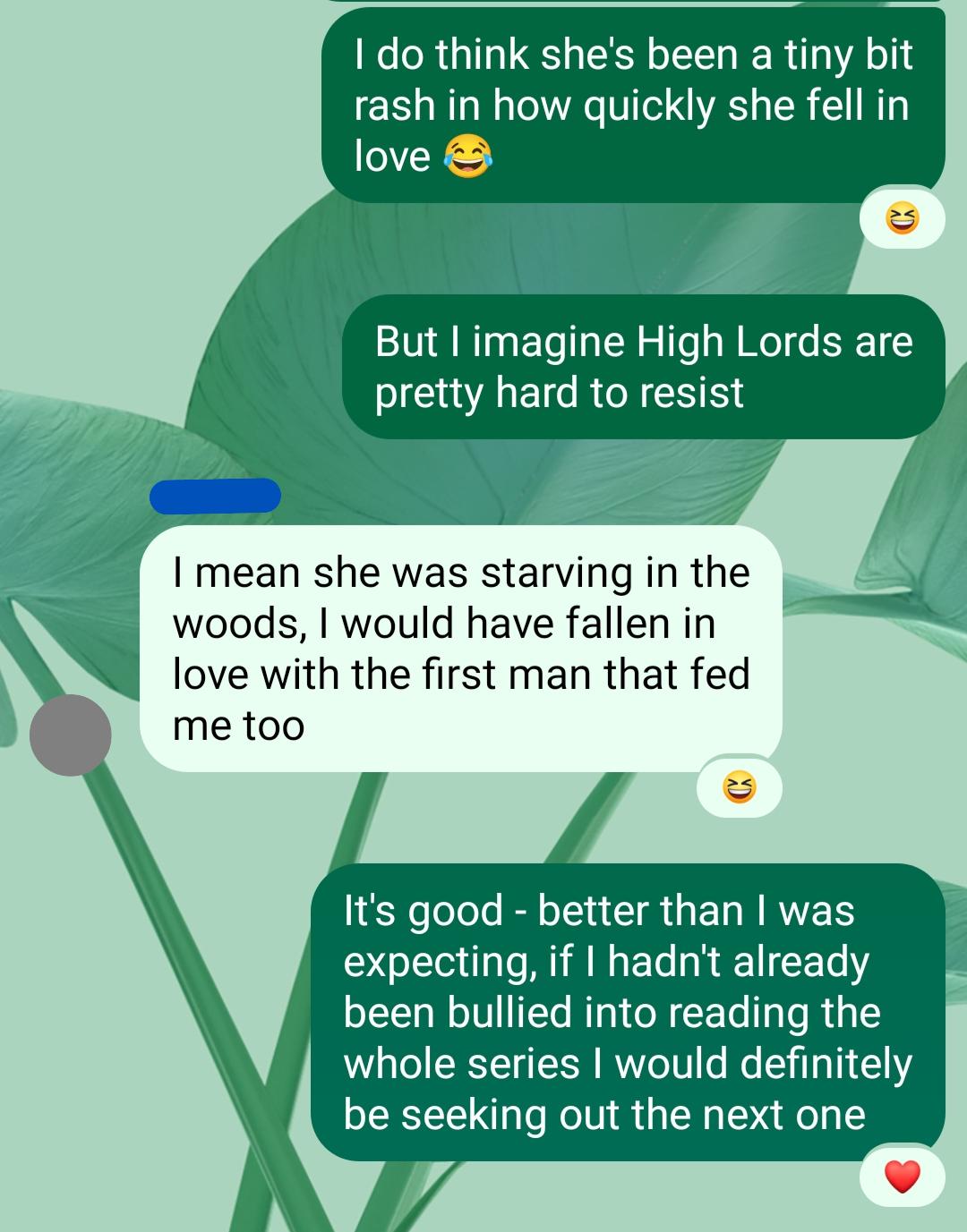 One thing that stuck with me was the feeling that the characters that we’re not primarily following are off doing their own thing the whole way through – I was a little surprised by Nesta / Cassian in this one, but I guess they’ve had their own lives as we’ve been following Feyre and Rhysand. It brought to mind a concept I read about called Sonder, and once I sat with it, I was kind of on board, it certainly made me want to see more of their story.