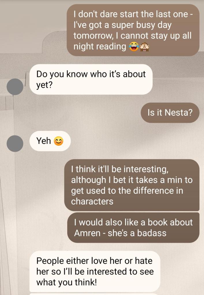 So what’s next? There are rumours of the next book being released in 2025 – only time will tell if that will come to fruition, but there’s a lot of people getting very excited! I’d love to see a book exploring Amren’s past, even prior to her joining the inner circle – and I’d be interested in seeing a book from one of the male characters point of view too. The more the better!